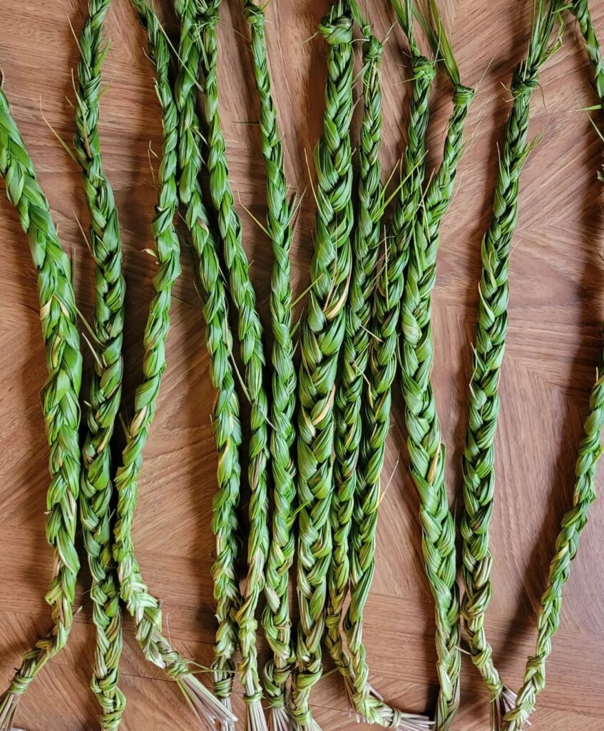 The sweetgrass braid has three sections, each carrying a sacred meaning: